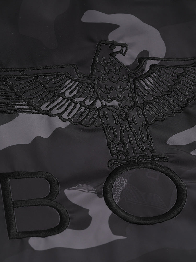 - Pattern Detail: Created to bring its streetwear-infused appeal to a younger generation. With its signature eagle face stamped across its garments, this jacket features panel detailing. 100% Nylon, Down Filled, Zip Closure, Side Pockets. Men's Panel Down Jacket in Gray Camo