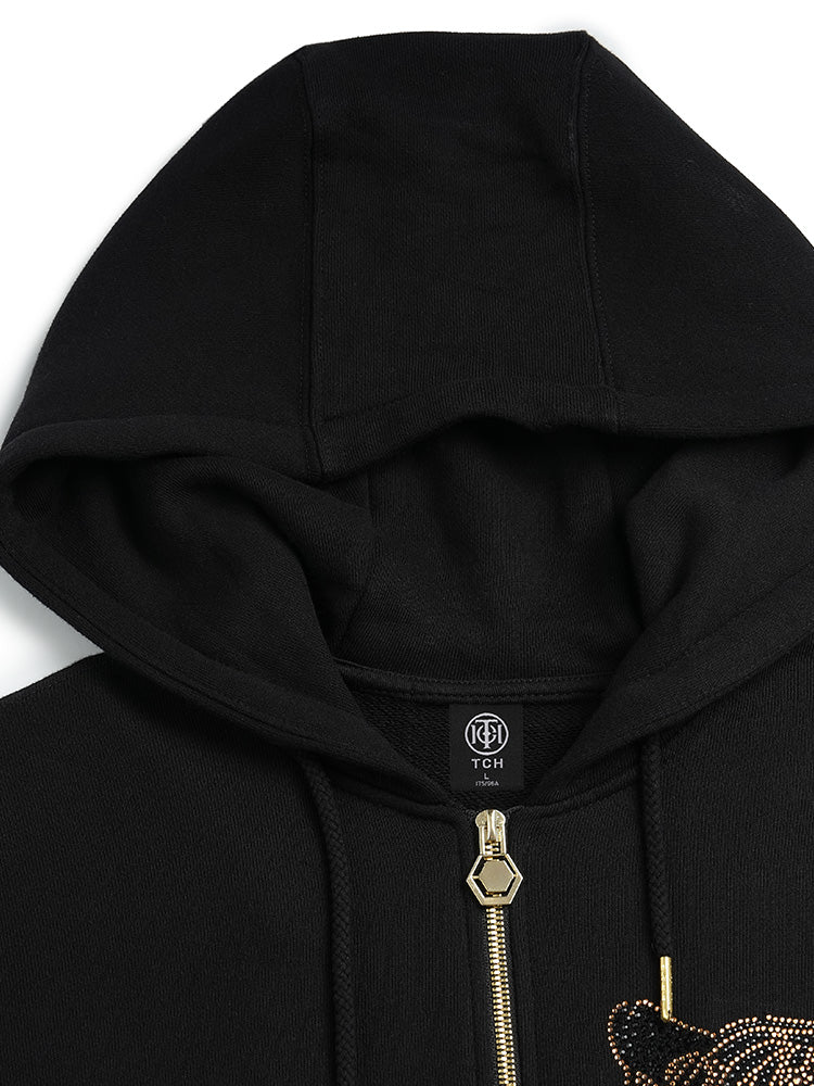 Rhinestone Leopard Long Sleeve Hoodie Jacket